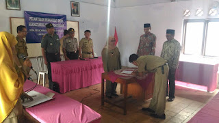 Babinkamtibmas Desa Pekacangan Aiptu Sukarman dan Serka Wateman dengan bersama sama melaksanakan pengamanan jalanya kegiatan pelantikan Sekretaris Desa agar berjalan dengan aman tertib dan kondusif.