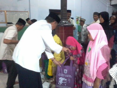 Agus Bastian membagikan santunan kepada anak yatim dan kaum dhuafa (foto suta)
